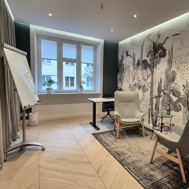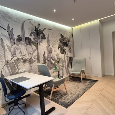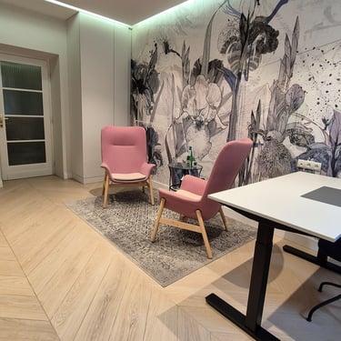 W lokalu znajduje się przytulna poczekalnia, dwa przestronne gabinety z wygodnymi fotelami oraz miękkim oświetleniem, które zostały zaprojektowane by gwarantować intymność rozmów.
